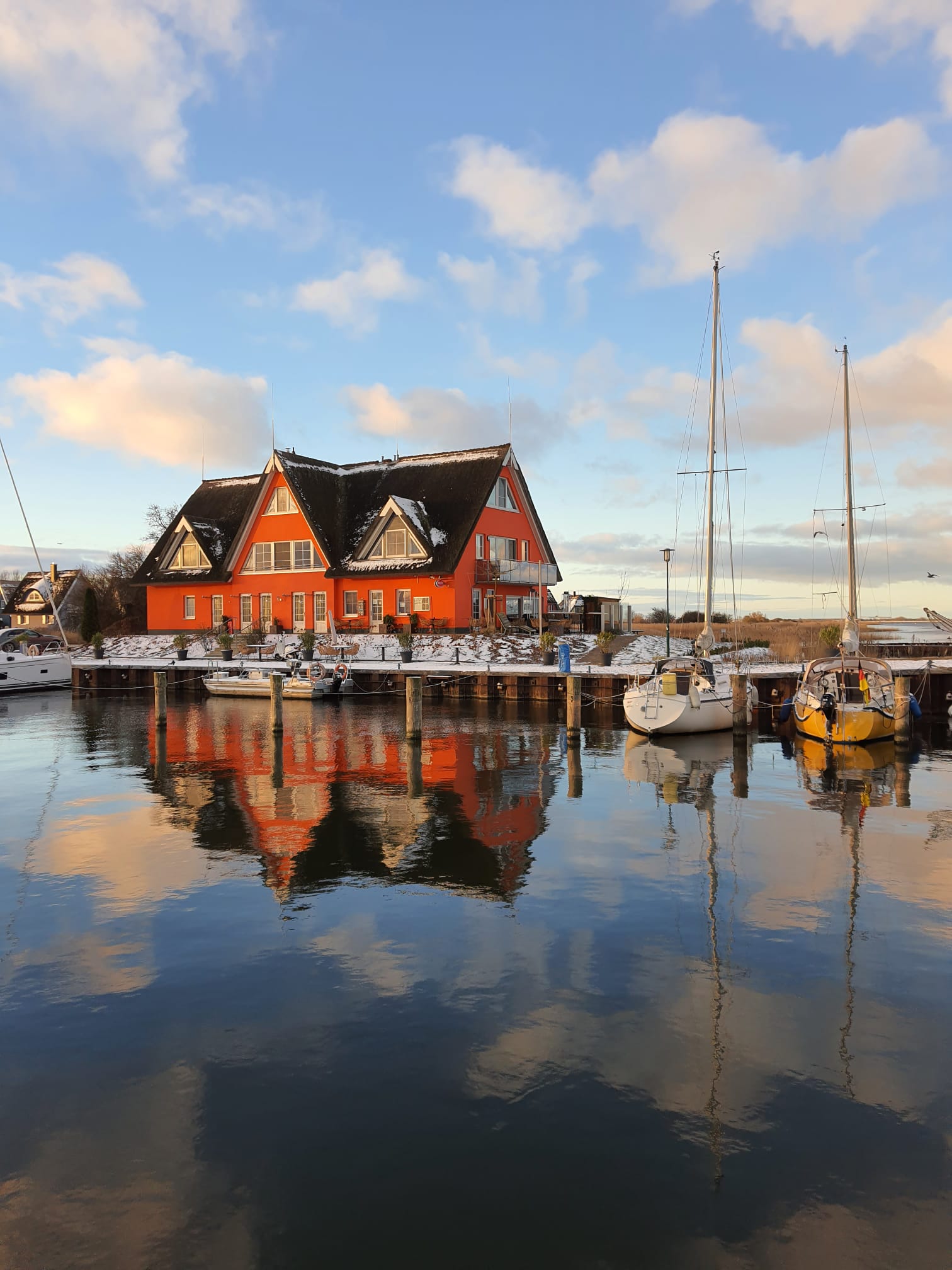 Schöner kleiner Hafen mit sehr nettem Lokal mit herrlichem Blick auf den Bodden und ausgezeichneter Küche. Sehr empfehlenswert.